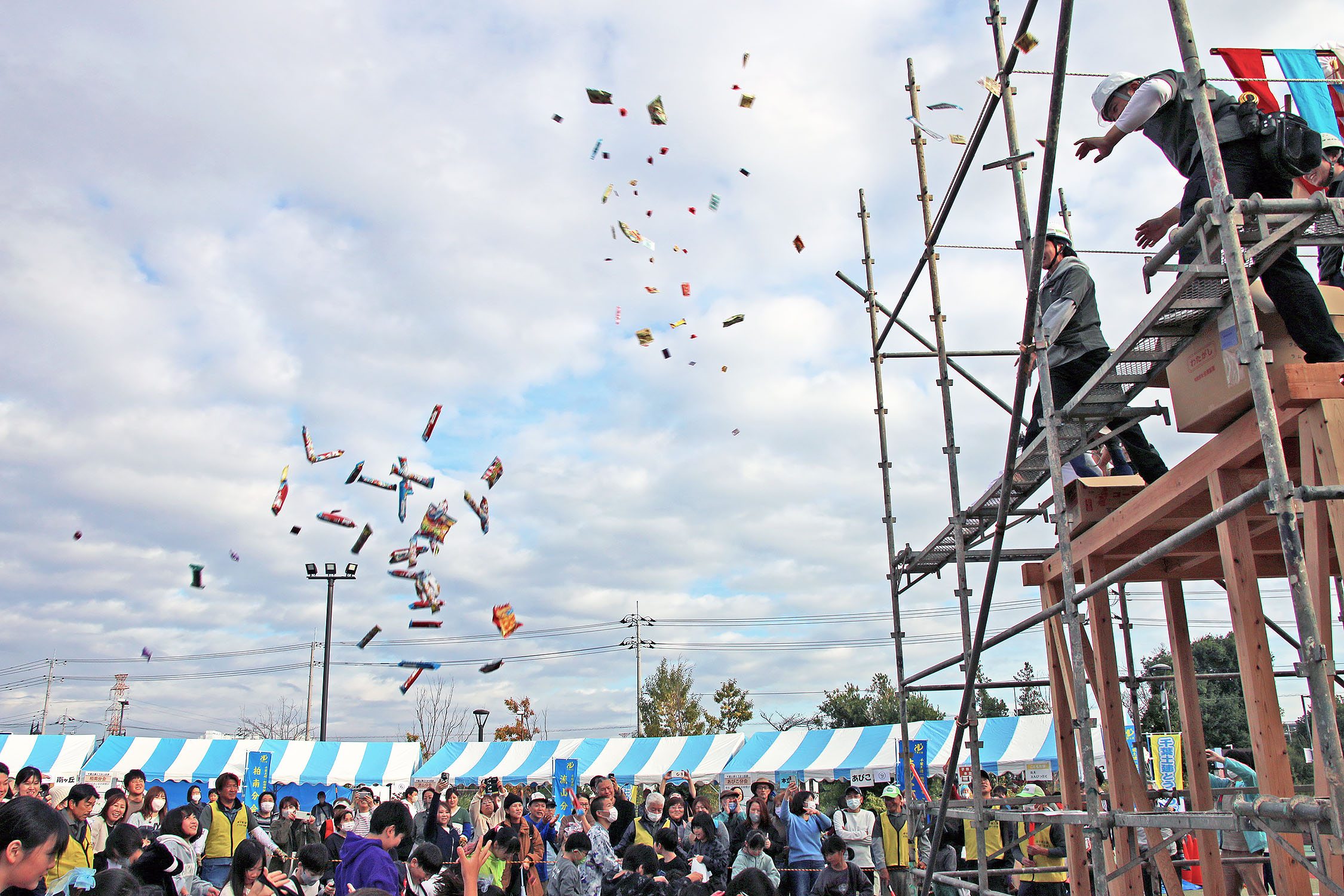 サービス:大抽選会、スタンプラリー、お菓子、餅まき、住宅相談 体験・実演:建前実演、ミニユンボ操縦、配管、建設コスプレ 工作:タイル工作、石膏手形づくり、塗装工作、ミニ畳づくり工作 減災・防災:家具転倒防止金具パネル展示等 その他:ストラックアウト、ミニパターゴルフ、おにぎり、缶ビール、綿あめ販売、子どもくじ、コリントゲーム、キッチンカー、共闘団体出店予定 |